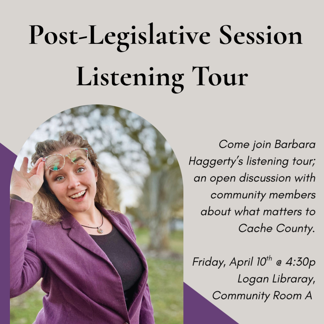 Barbara is dedicated to bringing the issues of Cache County to the House Floor. She's not worried about the 10 Commandments in schools, she wants to make sure Utah has affordable housing policy that works. She wants to protect and care for our public lands.